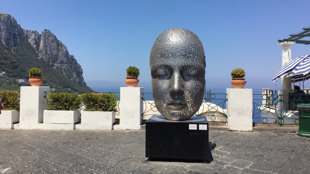 Antonello continued to point out items of interest as we made our way around the island – the elfin-looking statue who sits on a rock pointing towards the coast of the mainland (“The Capri Welcoming Committee,” said Antonello); the natural bridge of Capri; the Blue Grotto (which we passed by – too long a line).