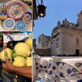 The Piazza Umberto was the hub of several little streets that spidered out in various directions, lined with trendy caffés and restaurants, and shops selling high-end jewelry and clothing, flat sandals that could be made to order on the spot with jeweled straps in various configurations, ceramic bowls brightly hand-painted – all those things that seem necessary to bring home from a vacation but then seem oddly out of place in one’s ordinary, everyday life in a mountain climate. Having visited some nine years before with my mother, I knew I wanted a few ceramic items I hadn’t bought the first time around, but always envied at my mother’s house – a bright little blue-and-yellow lemon bowl she used for lemon wedges every time she served fish, another painted with olives that she used for dipping oils – so I just window-shopped on my first pass, and bought a few of the things I liked best on the way back through. I wanted to make sure that the prices I was seeing were consistent with what I would find elsewhere on the island.