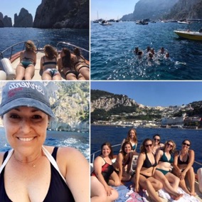 When we got back on the boat and continued our trek around the island, the girlies went to the front to lay on their bellies in their bikinis, all their American body insecurities forgotten under the bright afternoon Capri sun and each other’s enthusiastic compliments. It was a sweet thing to watch them, their support for one another, their joy in the experience.