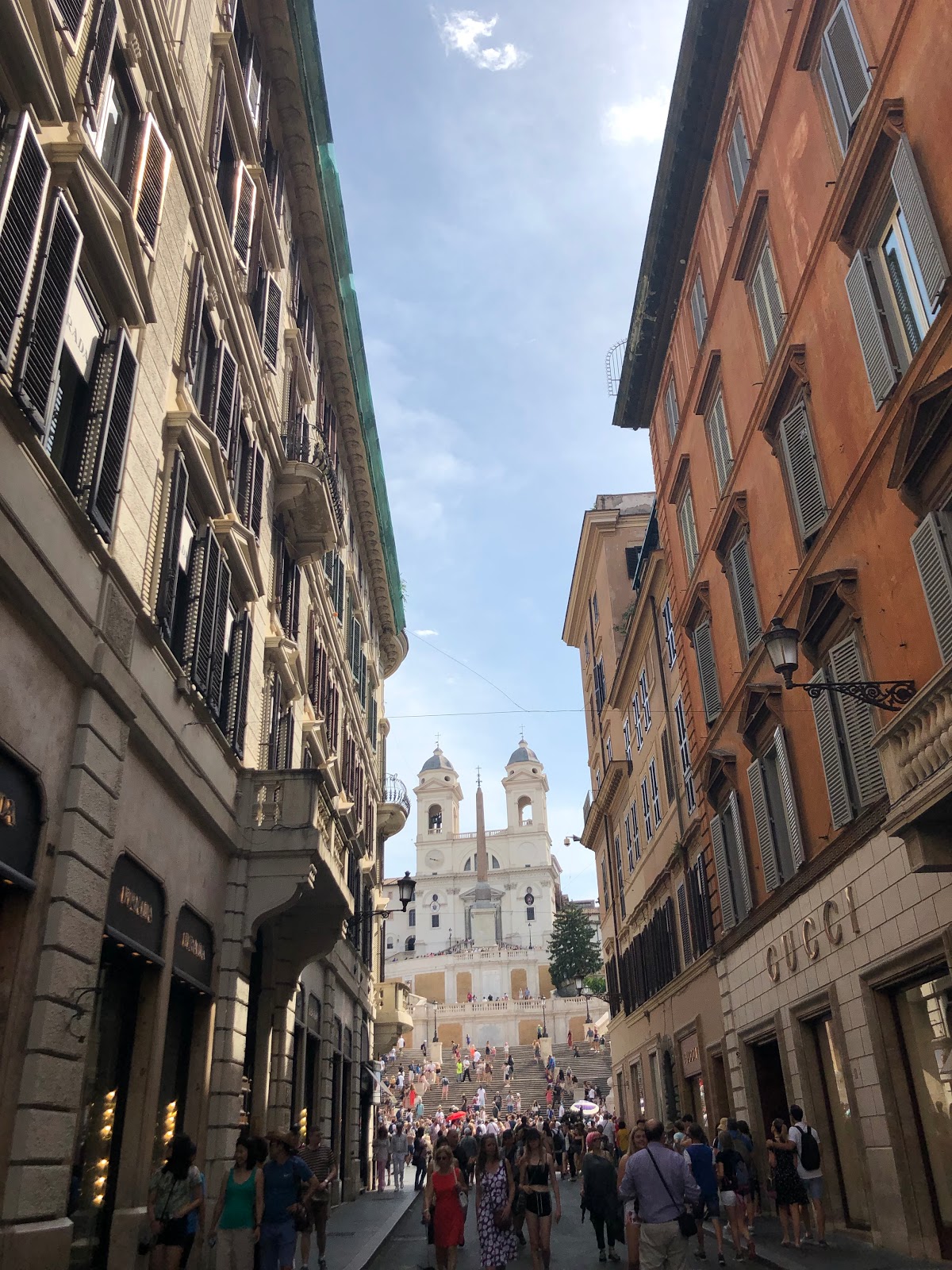 Despite the Catholic Church’s stronghold on Italian culture and attire, Italy has always been at the forefront of high fashion. The most iconic fashion designers are from Italy and Italians know how to represent them well. Via del Corso, the main street in Central Rome, is littered with these high-end boutiques and shops. Valentino, Prada, and Gucci are just a few examples. I have already stated that Italians prioritize quality over convenience and that is clear within the walls of these designer stores. Each product in Valentino was handled with pristine white gloves and the utmost care. Every employee in Gucci was ready to assist each customer on their journey to find the right belt or purse. Italian goods have a higher standard of quality than most American products in general. The leather products are exquisite, the dyes in the fabric are vibrant and to die for, and everything is created and crafted carefully. These accessories and clothes are not just things one wears or puts on their body. These products become a part of your image. They represent your ideals and passions. Accessories, especially high-end accessories, are just as much a part of your image as your hair and smile.